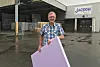 Stein Trygsland foran hallen der den nye produksjonslinjen for XPS-isolasjon skal installeres.