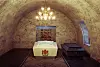 Slik ser sarkofagene i det kongelige mausoleet ut. Kong Haakon og dronning Maud er stedt til hvile i en marmorsarkofag (i midten), mens kong Olav og kronprinsesse Märtha stedt til hvile i bronse-sarkofag. Foto: Morten Hvaal / NTB