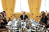 Regjeringens kontaktutvalg har et ekstraordinært møte om situasjonen i Midtøsten i regjeringens representasjonsbolig i Oslo fredag. Foto: Amanda Pedersen Giske / NTB
