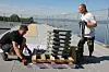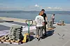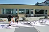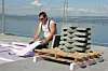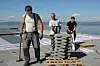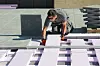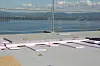Betonghellene er 50x50x5 cm. Det blir tilsammen mange tonn på det 400 kvm store taket.