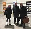 Heidi Finstad, administrerende direktør i Treindustrien, Roar Voll, daglig leder i Alvdal Skurlag og Sigbjørn Johnsen, Fylkesmann i Hedmark under åpningen av Royal Alvdal Hall.