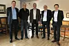 Drammen havn og Moelven har inngått avtale om eksport av pellets. Fra venstre assisterende havnedirektør i Drammen, Ivar Vannebo, prosjektleder for Moelvens nye pelletsfabrikk på Sokna, Roger Lehtonen, havnedirektør Einar Olsen, logistikkdirektør i Moelven Wood, Per Børke, og direktør i Moelven Pellets, Lars Storslett.
