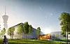 Bassengbyggets fasade mot sør. Illustrasjon: Link Arkitektur