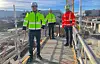 Leder for stillas i Norge, Kenneth Iversen (foran), opplyser at de i første omgang skal levere 7.000 kvadratmeter med stillas til Kvarteret-prosjektet på Lillestrøm, her foran byggetomten sammen med anleggsleder i Veidekke Bjørn Kolaas (t.h.) og storkunde-selger Jarle Pettersen(bakerst) i Ramirent Norge.