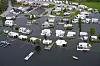 Forsikringsselskapene har de siste ti årene erstattet 42,3 milliarder kroner i vær‑ og naturskader på bygninger og innbo. Bildet er fra en campingplass ved Hamar, som ble rammet av ekstremværet Hans i 2023. Foto: Ole Berg-Rusten / NTB