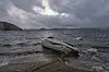 Kristiansand 20180921. Ekstremværet Knud herjer. På Hamresanden i Kristiansand har båter slitt seg og havnet på land og snudd på hodet i bølgene.