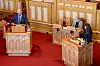 Sp-leder Trygve Slagsvold Vedum, her under Stortingets spørretime, ville ha garantier fra næringsminister Cecilie Myrseth (Ap) om at regjeringen vil følge opp vedtatte avgiftskutt på bensin og diesel. Foto: Terje Pedersen / NTB