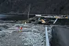 Veistykke raste ut - se bilder av gravemaskinene som forsvinner ut i vannet