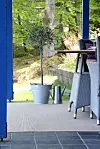 En svart flis kan en varm sommerdag i en lun krok kunne komme opp i 50-60 grader, og da blir det ikke lenger en behagelig terrasse å oppholde seg på.