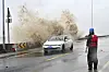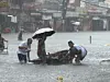TV-opptak fra naboprovinsen Zhejiang viser hvordan gater har blitt forvandlet til elver, trær som ligger strødd i veiene, og syklister som strever seg gjennom gatene med vann til knærne.