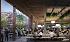 Lilletorget sett fra Nylandsbrua: Vaterlandsparken med ny adkomst til Akerselva og aktiviteter gjennom døgnet. Illustrasjon: Henning Larsen/ Vivid visuals