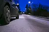 Oslo 20161223. Bil på glatt vei. Kaldt vær over natten har gjort at veien har blitt dekket med is.